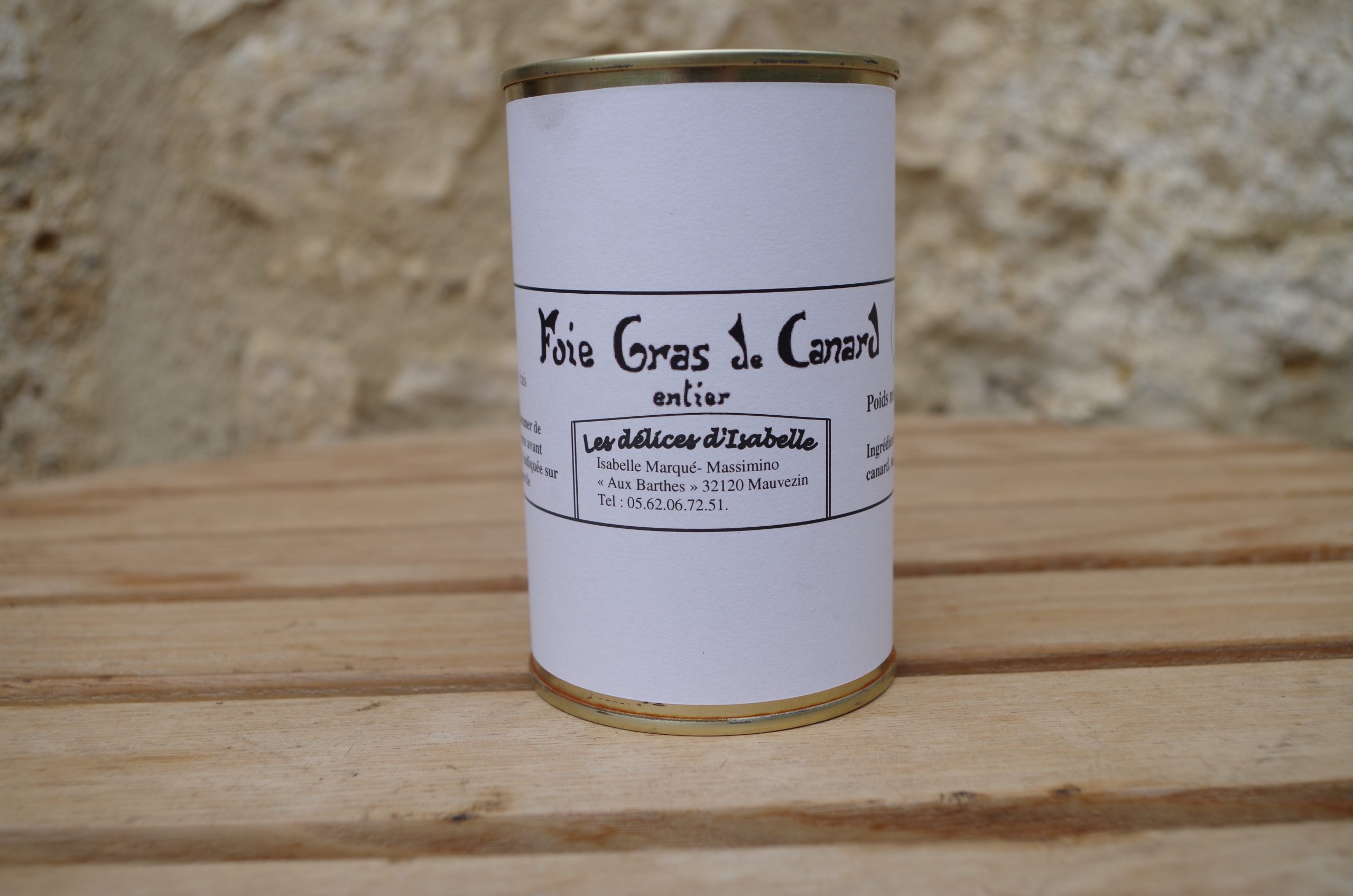 Foie gras de canard entier, assaisonné simplement au sel et au poivre, puis préparé de façon artisanale pour préserver toute l’authenticité et la finesse du goût. Idéal pour les repas de fête ou les moments d’exception.